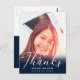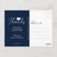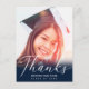 Thank your family and friends for their graduation gifts and well wishes with this elegant custom photo postcard. This chic design template features your photo with an blue overlay at the bottom and a modern hand lettered white script which reads "Thanks" and your name, and class/year below. The back of the card has a thank you note and signature for your to personalize an a green background. Congratulations on your graduation! Designed by artist Susan Coffey.