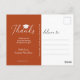 Thank your family and friends for their graduation gifts and well wishes with this elegant custom photo postcard. This chic design template features your photo with a burnt orange overlay at the bottom and a modern hand lettered white script which reads "Thanks" and your name, and class/year below. The back of the card has a thank you note and signature for your to personalize an a green background. Congratulations on your graduation! Designed by artist Susan Coffey.