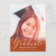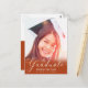 Annoncez votre remise de diplômes 2020 à votre famille et à vos amis avec cette carte postale moderne personnalisée pour votre faire-part photo et invitation à la fête. Le modèle design présente votre photo avec une couverture orange brûlée et un script blanc à la main moderne qui dit "Graduate" et votre nom, et classe/année ci-dessous. Le verso de la carte contient plus de détails de votre graduation avec l'invitation de la fête pour vous de customiser accentué par un bouchon blanc de graduation sur un arrière - plan orange. Félicitations pour votre diplôme ! Conçu par l'artiste Susan Coffey.