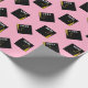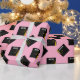 Graduation gift wrap featuring black and gold graduation cap on a pink background for the grad. To personalize edit text to add name and senior class year.
