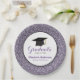 This graduation paper plate features a stylish purple faux glitter border and accented with a graphic of a graduation hat (mortarboard). Personalize these fun party plates with the graduate's name, graduating year and school.