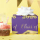 Graduation wrapping paper featuring a repeating pattern of CLASS OF YEAR (editable year) in gold with a faux metallic gold foil graduation cap or mortarboard against your choice of colour background (shown in an editable purple). Use for wrapping graduation gifts or as display backdrops or table coverings at the graduation party. ASSISTANCE: For help with design modification or personalization, colour change, resizing, transferring the design to another product or if you would like coordinating items, contact the designer BEFORE ORDERING via the Zazzle Chat MESSAGE tab below or email makeitaboutyoustore@gmail.com.