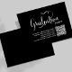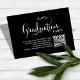 Ce design comprend une invitation à la fête de code QR de graduation, avec un modèle minimaliste de calligraphie moderne, avec une typographie noir et blanc, une simple insertion d'invitation, des détails d'information, une grande partie informations d'info détails, idéal pour le lycée ou collège, idéal pour la carte d'insertion d'invitation de fête, avec un scannable détails de code QR, avec un casquette de graduation casquette mortier