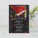 Graduation Red Grad Cap Diploma Confetti Black Invitation