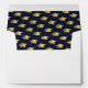 Personalized modern graduation stationery envelopes featuring a faux metallic gold graduation cap pattern on a navy blue background inside and preprinted with your graduate's return address in navy blue and accented with a faux metallic gold graduation cap to coordinate with your graduate's invitation, announcement or thank you card. The sample shows a chic fancy script typography for the name you can change to another font style as desired. Make changes in EDIT. ASSISTANCE: For help with design modification or personalization, colour change, resizing, transferring the design to another product or if you would like coordinating items, contact the designer BEFORE ORDERING via the Zazzle Chat MESSAGE tab or email makeitaboutyoustore@gmail.com.