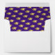 Personalized modern graduation stationery envelopes featuring a faux metallic gold graduation cap pattern on a purple background inside and preprinted with your graduate's return address in purple and accented with a faux metallic gold graduation cap to coordinate with your graduate's invitation, announcement or thank you card. The sample shows a chic fancy script typography for the name you can change to another font style as desired. Make changes in EDIT. ASSISTANCE: For help with design modification or personalization, colour change, resizing, transferring the design to another product or if you would like coordinating items, contact the designer BEFORE ORDERING via the Zazzle Chat MESSAGE tab or email makeitaboutyoustore@gmail.com.