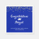 Graduation Royal Blue Silver Confetti Brush Script Napkin