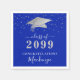 Elegant personalized royal blue and silver graduation party paper napkins featuring a faux metallic silver foil graduation cap, silver confetti, fancy calligraphy script typography and class year with CONGRATULATIONS and your graduate's name against an editable royal blue background colour you can change to a school colour or coordinating party theme colour by clicking EDIT. ASSISTANCE: For help with design modification or personalization, colour change, transferring the design to another product or you would like coordinating items, contact the designer BEFORE ORDERING via Zazzle Chat or makeitaboutyoustore@gmail.com.