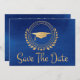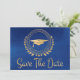 I enjoy designing art work for graduations. This is modern simple and elegant classic gold and blue coloured Save the Date announcement card. Modern style text. Add your own message on the back of the cards giving details to your family and friends to save the date for a graduation ceremony, event, party or other occasion. Logo style design includes laurel leaves, stars and a graduation cap.