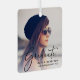 Celebrate her graduation this holiday season with a keepsake ornament featuring two photos overlayed with "Graduate" in a stylish script on the front and the back. Add her name, school and class year in modern typography.