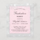 Faux silver metallic and blush pink coloured background decorated with faux silver glitter dust. Personalize and add a name and party details. Black coloured, elegant script.