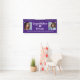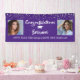 Silver confetti and editable title CONGRATULATIONS (graduate's name) in a handwritten brush script font in white against an editable purple background that you can change to coordinate with school or party theme colours by clicking on the CUSTOMIZE FURTHER tab. PHOTO TIP: For fastest/best results, choose a photo with the subject in the middle and/or pre-crop it to a similar shape as shown BEFORE uploading and it will fill the photo space perfectly. Contact the designer if you'd like this design modified, on another product or desire complementary items for your event.