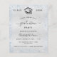 A modern, elegant and minimalist graduation party invitation. Faux silver looking background decorated with light blue faux glitter sparkles. Personalize and add a name, year and details. Black coloured letters.