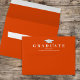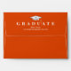 This design features graduation graduate grad party, a modern mortar board cap hat, a basic 5x7 a7 envelope size, a orange simple minimalist minimal, a traditional mortarboard mortar board, with a return address back flap printed, a plain clean simplistic minimalist, a graduation party invitation envelope, a graduation announcement envelope, a orange grad party envelope
