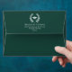 This design features a graduation graduate grad simple, with a modern classic elegant traditional, a classic laureate laurel leaves, with a modern mortarboard mortar board cap,5x7 a7 envelope size, a return address printed back flap, a grad party invitation envelope, a graduation announcement envelope, with school colours dark green theme, a graduation grad party matching envelopes