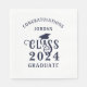 Celebrate and congratulate your graduate with personalized, custom graduation party or open house paper napkins featuring your custom text (shown with CONGRATULATIONS NAME) and CLASS OF YEAR GRADUATE in retro decorative typography and school name or other custom text. All text, the graduation cap graphic and background colours are editable to change to school colours or coordinating party theme colours (shown in navy blue on white) NAPKIN OPTIONS: The sample is shown in the 6.25-inch luncheon--other sizes and paper colours are available on the ordering page. ASSISTANCE: For help with design modification or personalization, colour change, resizing, transferring the design to another product or if you would like coordinating items, contact the designer BEFORE ORDERING via the Zazzle Chat MESSAGE tab below or email makeitaboutyoustore@gmail.com.
