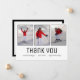 Show your gratitude with cool, modern, customizable graduation thank you cards. Replace the grad sample photos and text with your own to make it unique. The trendy black geometric text below the photographs on the front reads, "Thank you." Customize the graduate name, high school or college and class year below it. Personalize the message on the back or delete it to handwrite your own note. A bold black border frames the white back of the flat card. You can change the white background colour of the front and back by clicking the customize button.