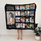 Black graduation keepsake fleece blanket featuring a 17 photo collage of the graduate through their school years and their name in a modern white typography. Add your personalized captions under each photo.