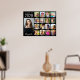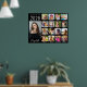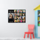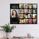 Black graduation party poster sign and keepsake featuring a 17 photo collage of the graduate through their school years and their name in a stylish white script. Add your personalized captions under each photo.