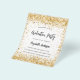 A stylish white background. Decorated with faux gold glitter dust. Personalize and add a name and party details. The name is written with a hand lettered style script