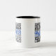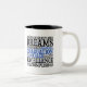 Graduation Word Cloud Coffee Mug-A decorative word cloud mug with loads and loads of text words relating to graduation. The colours are black and blue texts in assorted font styles on a plain white background.
