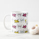 Chiens rouges jaunes et mug personnalisable os en style Graffiti avec nom sur cercle blanc. Vous pouvez facilement modifier le texte (police, taille, couleur et position) et la couleur arrière - plan (ici blanche) en cliquant sur le bouton Personnaliser ou customiser. N'oubliez pas de faire correspondre d'autres produits avec le même motif : couverture bébé, linge de bébé et plus.
