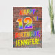 The front of this vibrant, fun and exciting birthday-themed greeting card design features the message "HAPPY 12TH BIRTHDAY" with letters having a multicolored rainbow like gradient pattern, and a customizable name coloured yellow, on a brick wall pattern background. The appearance is inspired by that of graffiti or street art drawn on wall. The inside features a customizable birthday greeting message. A fun, happy, editable birthday greeting card like this might be a special way to commemorate somebody’s 12th birthday. [~Z0000357]