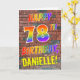The front of this vibrant, eye-catching and exciting birthday-themed greeting card design features the message "HAPPY 78TH BIRTHDAY" with letters having a multicolored rainbow like gradient pattern, and a editable name coloured yellow, on a wall-of-bricks pattern background. The appearance is inspired by that of graffiti or street art drawn on a wall. The inside features a personalized birthday greeting message. A happy, fun, customized birthday greeting card like this might be a special way to commemorate somebody’s 78th birthday. [~Z0000357]