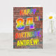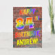The front of this exciting, vibrant and eye-catching birthday-themed greeting card design features the message "HAPPY 84TH BIRTHDAY" with letters having a multicolored rainbow like gradient pattern, and a custom name colored yellow, on a wall-of-bricks pattern background. The style is inspired by that of graffiti or street art drawn on a wall. The inside features a birthday greeting message that can be customized. A happy, fun, personalized birthday greeting card like this might be used to send a birthday greeting message to somebody who is celebrating their eighty fourth birthday. [~Z0000357]