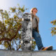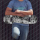 black and white picture on skateboard of graffiti
