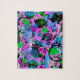 A lively abstract in shades of turquoise, pink, purple, lavender, periwinkle, green, black and white.