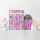 This contemporary gift wrapping paper features a vibrant multicolor pattern, with cut-out words from the message 'Have a totally cool birthday' on a bright magenta pink background. The pattern within the words has a colourful graffiti effect.