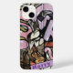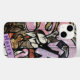 Phone case in a colourful Graffiti Style. Add the name of the phone owner. Main colours are mauve, pink, and purple,