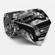 this white tie utilizes black graphics of cars, ladies, and other imagery to create a walking graffitied wall