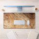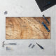 Un tapis de bureau en bois de style rustique et moderne. Style terreux dans les tons bleu clair et foncé.