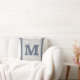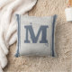 Grain Sack Blue Grey Vertical Stripes Monogram M Throw Pillow