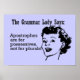 Grammar Lady Says: apostrophes are for possessives, not plurals! Grammar Lady wants you to remember that if you're just pluralizing, don't add the apostrophe! Simple single colour design with text and face.