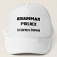 A drawing of the words "Grammar Police To Serve And Correct" which is done in a black font.