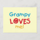 Grampy Loves Me T-shirts, cards, stickers, bodysuits bags, and more with colourful red, yellow, and blue text and heart design. These Grampy Loves me apparel and gift items will make grampy smile!