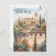 This travel postcard, in oil painting illustration style, showcases the European skyline of Granada, Spain.
