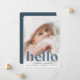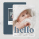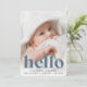 Un design faire-part de naissance doux et élégant avec un fond plein de saignement photo horizontale ou orientée paysage avec "bienvenue" recouvert de lettrage rétro sur le fond. Le nom et les statistiques de naissance de votre bébé apparaissent en dessous. Ajoutez une photo supplémentaire à l'arrière, accompagnée d'un message personnel.