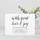 Avec grand amour et joie, Cartes d'invitation pour réception de mariage en fuite. Cette carte d'invitation de mariage rustique kraft est parfaite pour votre réception de mariage et fête de célébration post-mariage. Ajoutez vos détails en police / lettrage noir assorti.