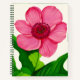 Journal dans une grande photo closeup d'un anémone, dans les tons rose corail, avec un centre bordeaux, et feuilles vert émeraude
