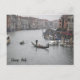 Venezia! Nothing says Venice like the Grand Canal. In this photo, a solitary gondolier steers his craft along a rather misty stretch of the canal, flanked by a small motor boat, and passing moorages. Tall, old buildings in different colours and some disrepair, line the canal. Instead of a porch, they have moorings; doorways face right onto the waterwhich is currently grey, reflecting the sky. In the lower left of the image are the words, "Venice, Italy" in black script. Photo copyright Gail Storrs 2006.