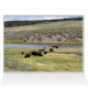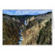 The cover of this card features a view of Lower Yellowstone Falls from Artist Point in Yellowstone National Park in Wyoming. The Yellowstone River flows north from Yellowstone Lake, leaving the Hayden Valley and plunging first over Upper Yellowstone Falls and then a quarter mile (400 m) downstream over Lower Yellowstone Falls, at which point it then enters the Grand Canyon of the Yellowstone, which is up to 1,000 feet (304 m) deep. The lower falls are 308 feet (94 m) high, or almost twice as high as Niagara, although not nearly as wide. On the inside of the card is a herd of bison along the Yellowstone River in the Hayden Valley. On the back of the card are four kayakers paddling toward Fishing Geyser Cone in Yellowstone Lake.