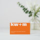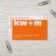 C'est un carte de visite de attention-obtention absolu. Les initiales de votre société se tiennent hardiment contre l'orange lumineuse avec votre nom de la société, description et/ou tagline dessous. Le type orange audacieux sur le dos est pour votre information de contact. C'est une carte complètement souple qui peut adapter à beaucoup d'entreprises et de professions. Disponible dans des couleurs alternatives avec les produits assortis.