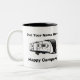 Cette tasse de café est disponible dans une variété de couleurs et vous pouvez changer le nom sur le dessus pour le personnaliser à votre nom. Il a un design de remorque de voyage semblable à une remorque de voyage Grand Design Reflection 297RSTS et les mots "happy campers" sur le fond. Ce message peut également être modifié selon vos souhaits. Vous pouvez également changer la couleur de l'intérieur de la tasse en une de plusieurs couleurs différentes. Il tient 11oz et a une grande poignée pour le rendre facile à tenir même lorsqu'il est plein. Un micro-ondes et un lave-vaisselle sont disponibles sur demande.