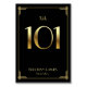 Carte de numéro de table mariage Great Gatsby Art Déco avec numéro 101 or et texte modifiable, où vous pouvez ajouter vos noms et date mariage, imprimé sur arrière - plan noir