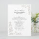 Le grand menu de table de mariage fait dans le blanc avec le sable de regard de relief a coloré des flourishes floraux. Personnalisez tout le texte pour adapter à votre menu de réception de mariage. Produits assortis de mariage disponibles.
