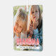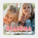 L'ornement moderne de Noël familial avec une photo de chaque côté que vous pouvez remplacer par la vôtre, le titre "grand-mère" dans une police de bulle rose en gras, et les noms des petits-enfants.